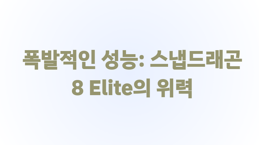 폭발적인 성능: 스냅드래곤 8 Elite의 위력